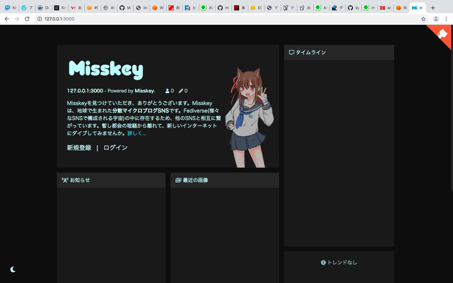 Misskeyをローカルでたてることに成功しました。