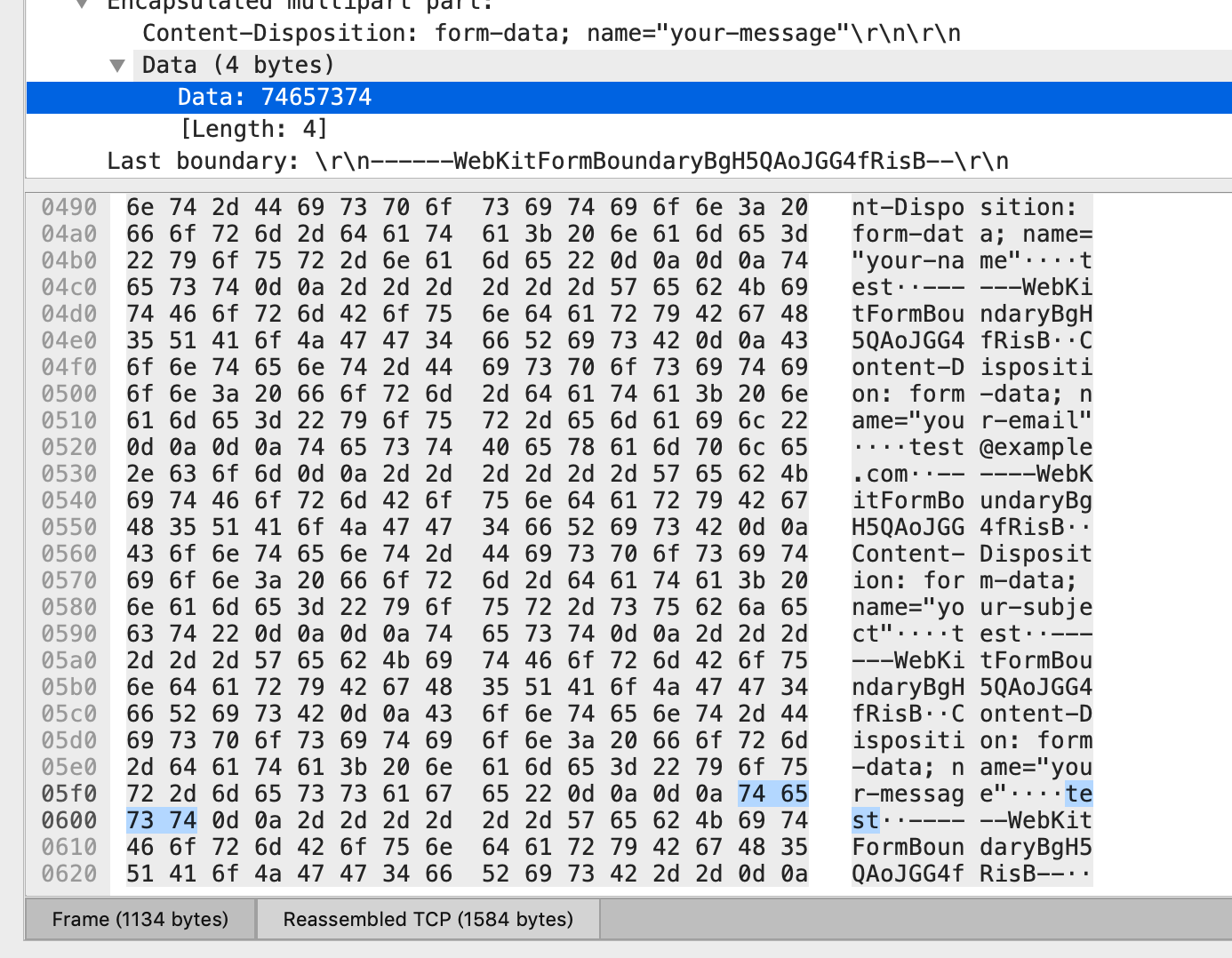 入力と同時にWireSharkを確認します。