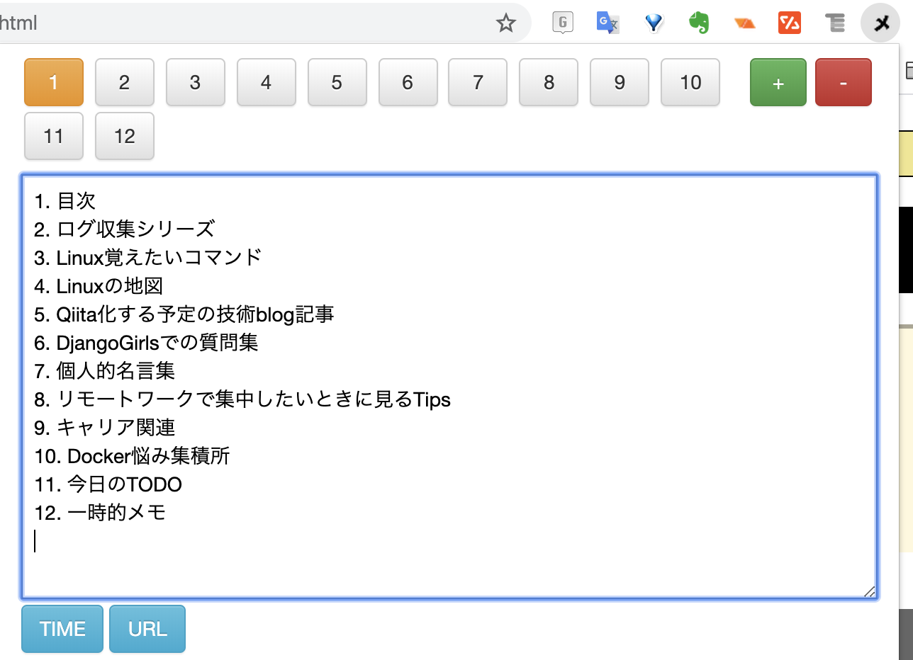 緑の「+」をクリックすると白紙のメモ欄を一つ増やすことができ