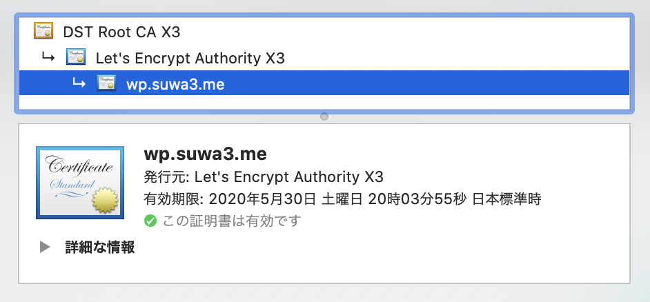 ここの証明書が30日に切れるから、自動で更新するようにしておきましょうね。