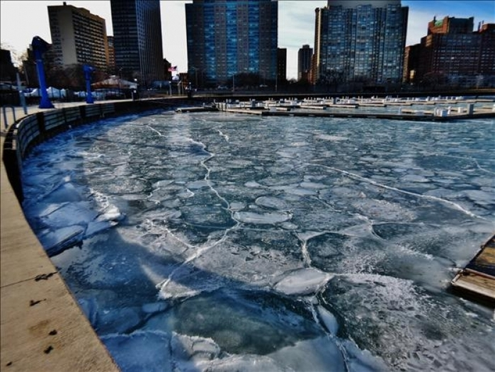 氷の板がくっつきながら凍ってこんな模様になったらしい。