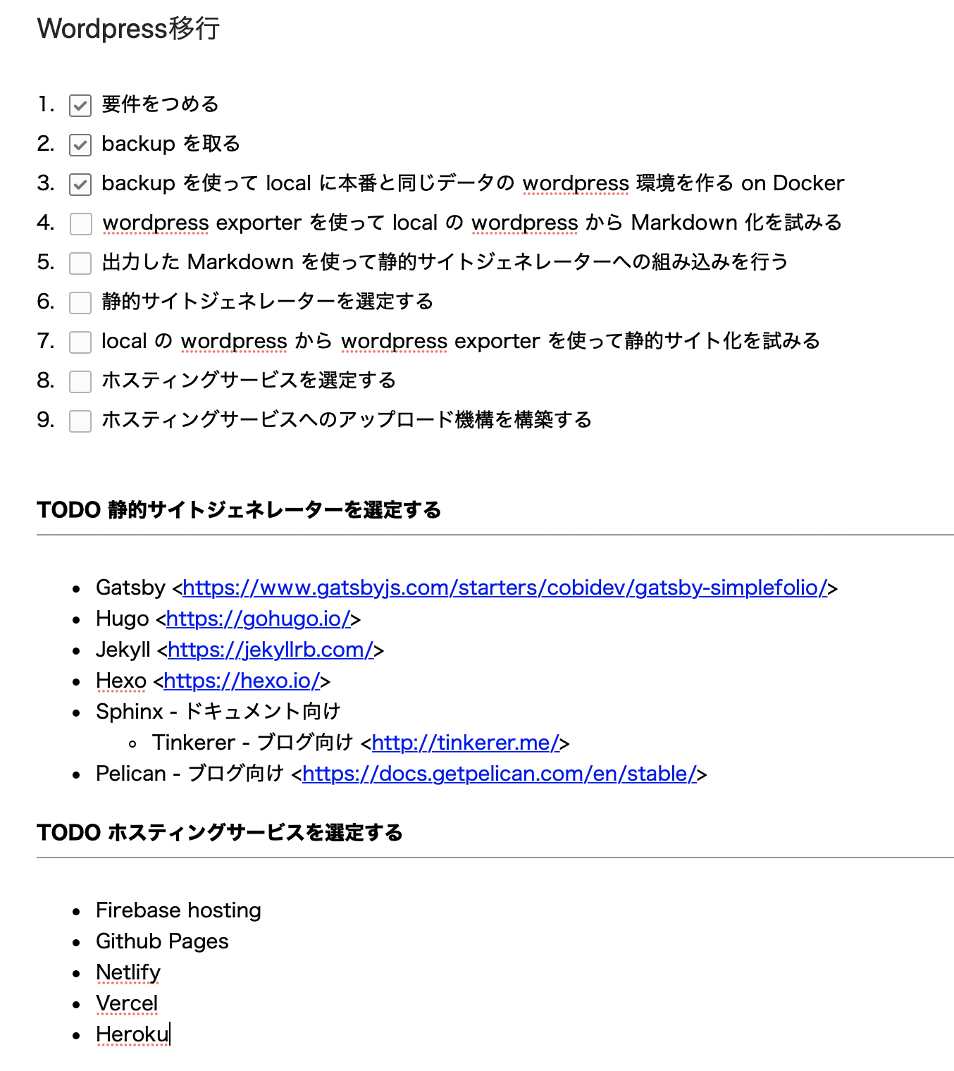 まず、やるべき内容を書き出しました。